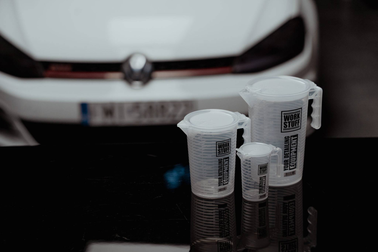 Work-Stuff Measuring Cup este un pahar gradat de măsurare profesional, conceput special pentru detailing auto și pentru dozarea corectă a soluțiilor concentrate precum APC, șampoane, degresanți, protectori sau orice alt produs chimic de detailing.