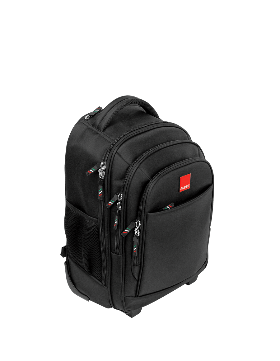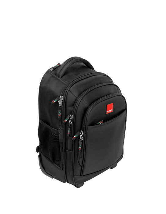 RUPES Wheeled Backpack este un rucsac multifuncțional conceput pentru călătorii, transportul echipamentelor sau utilizarea zilnică, combinând avantajele unui rucsac cu cele ale unui troller. Datorită roților integrate și mânerului telescopic, acesta poate fi transportat cu ușurință în timpul deplasărilor.