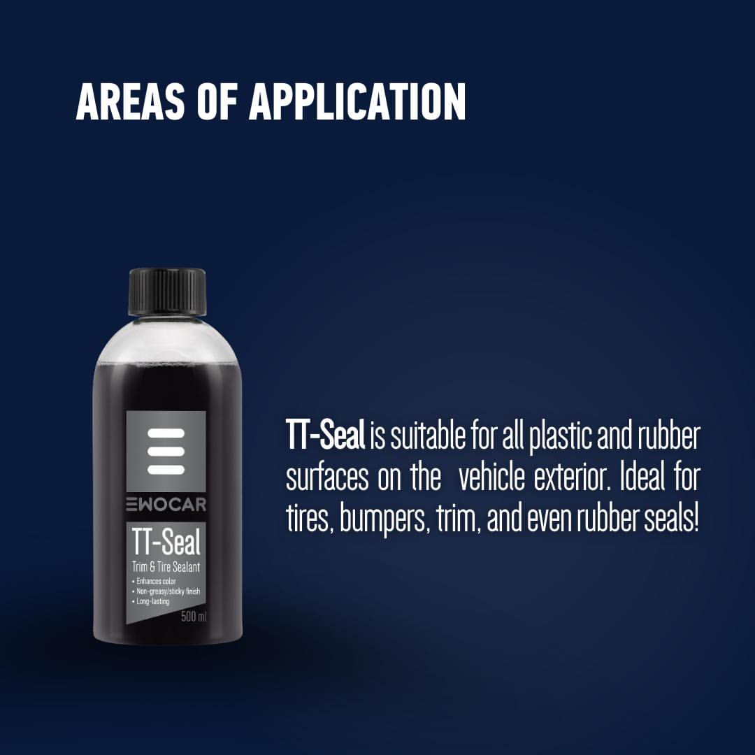 Ewocar TT-Seal este un dressing exterior de înaltă calitate, creat special pentru restaurarea, intensificarea și protecția plasticelor și elementelor din cauciuc. Ideal pentru anvelope, plastice nevopsite, chedere, apărători de noroi și ornamente exterioare, TT-Seal redă suprafețelor decolorate un aspect profund, bogat și uniform, cu finisaj curat și uscat.